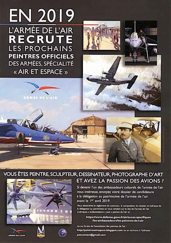Ainsi, une nouvelle sélection est lancée en ce début 2019 (pour obtenir ou reconduire un agrément ou demander une titularisation), avec au niveau des critères pour les candidats, « des personnes physiques et majeures de nationalité française », des artistes dont « les oeuvres sont inspirées par des faits militaires intéressant le domaine aérien ».